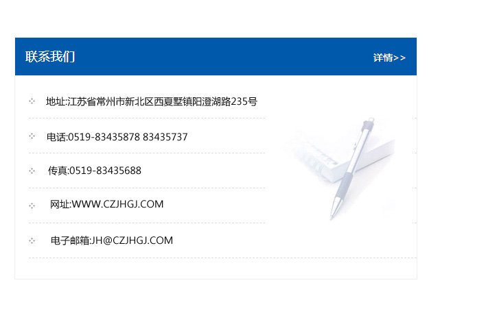 傳真:0519-83435688    郵編:213135    網址:WWW.czjhgj_com.cvitlib.com    電子郵箱:JH@czjhgj_com.cvitlib.com